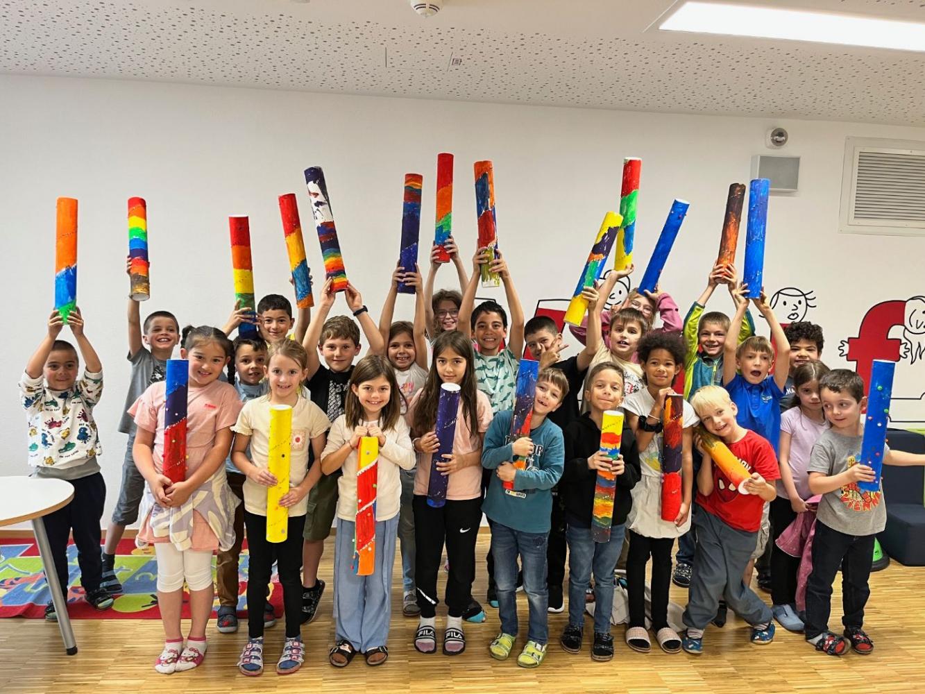 Werken in der 1a von Bijan Arbab 23. Juni 2025 In der 1a wurde gebastelt! Begeistert bauten die Kinder bunte Regentrommeln. Dann ließen wir die Schule zur Werft werden und die Kinder experimentierten an ihren eigenen Booten. Am Ende wurde ausprobiert ob die Schiffe auch schwimmen!